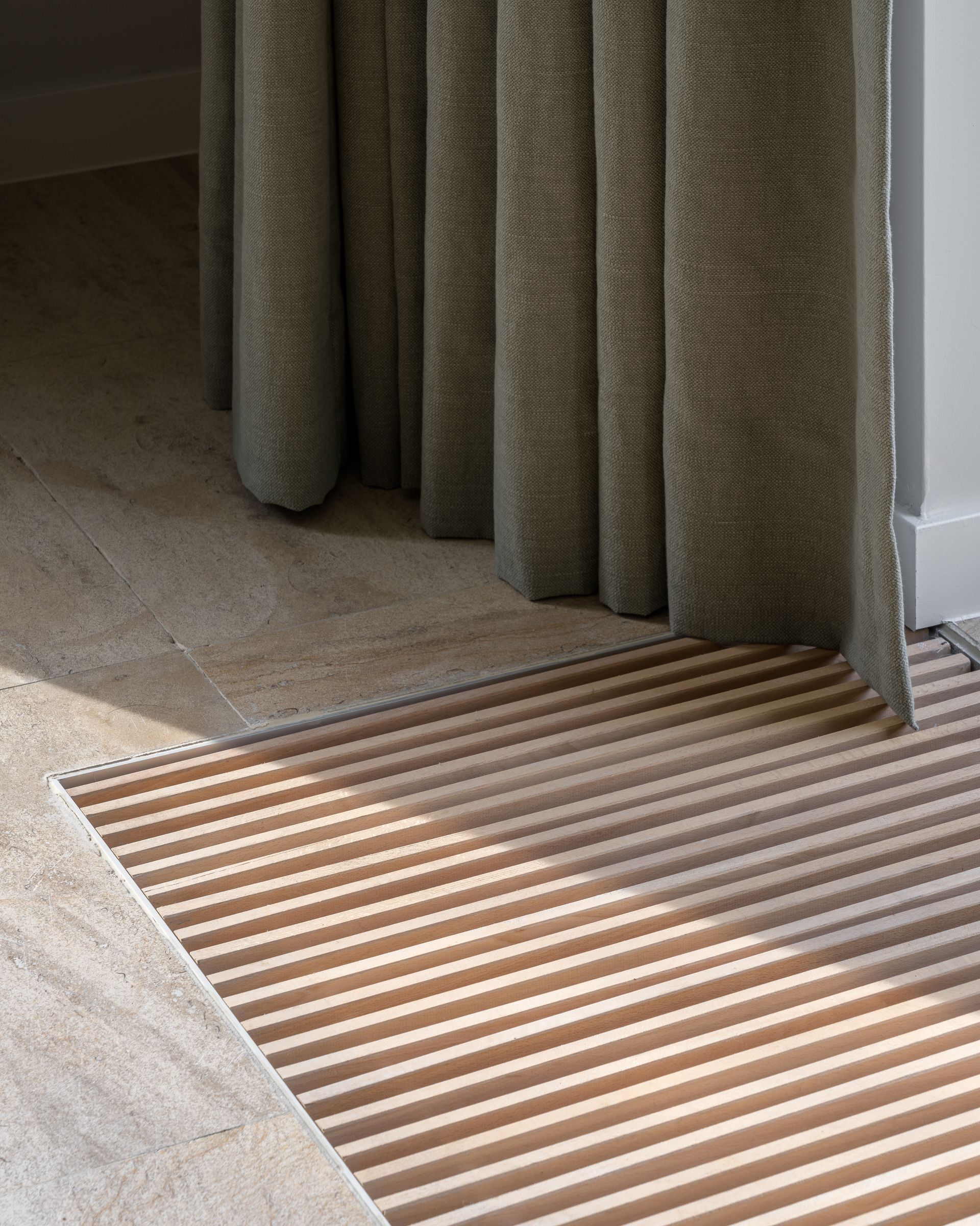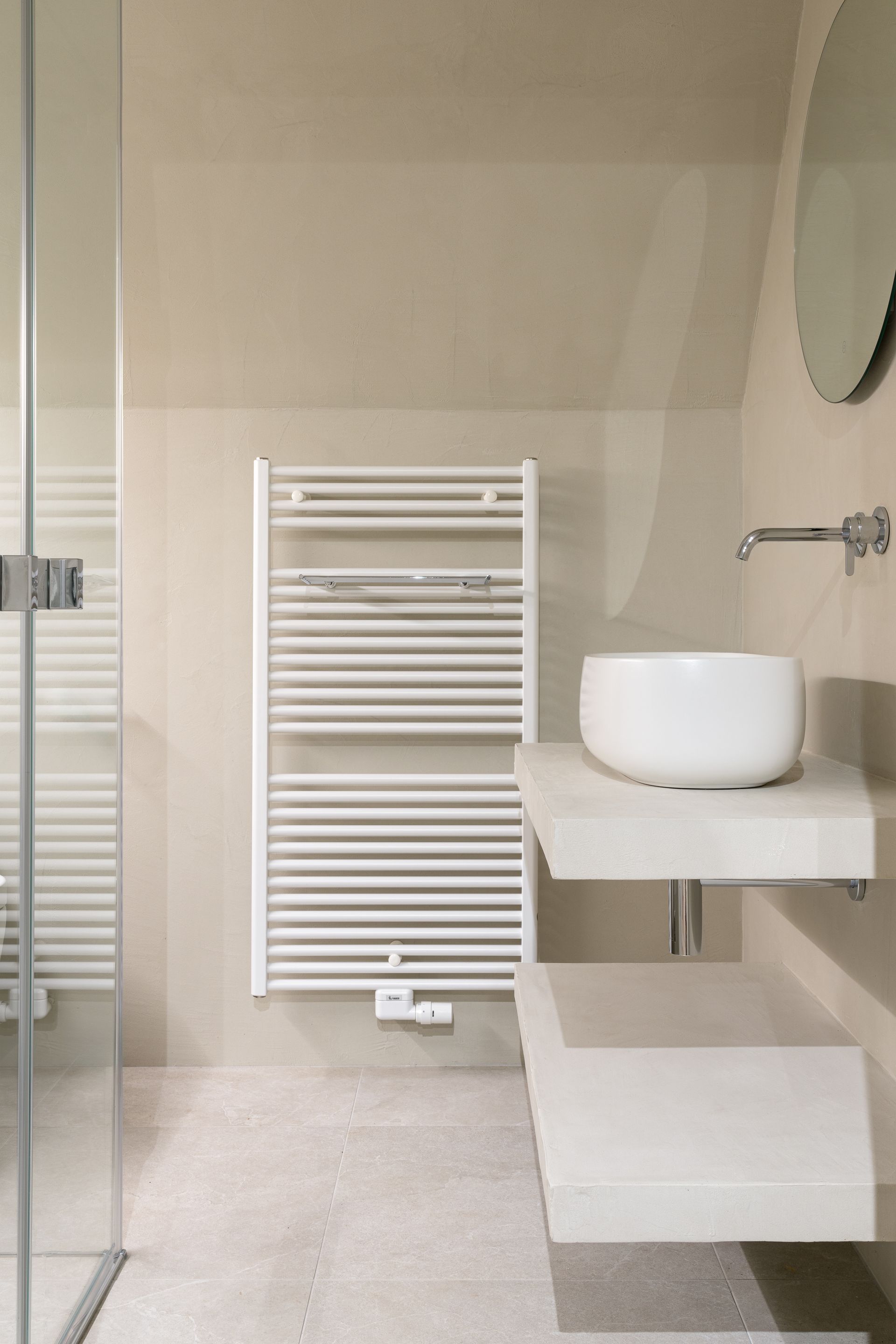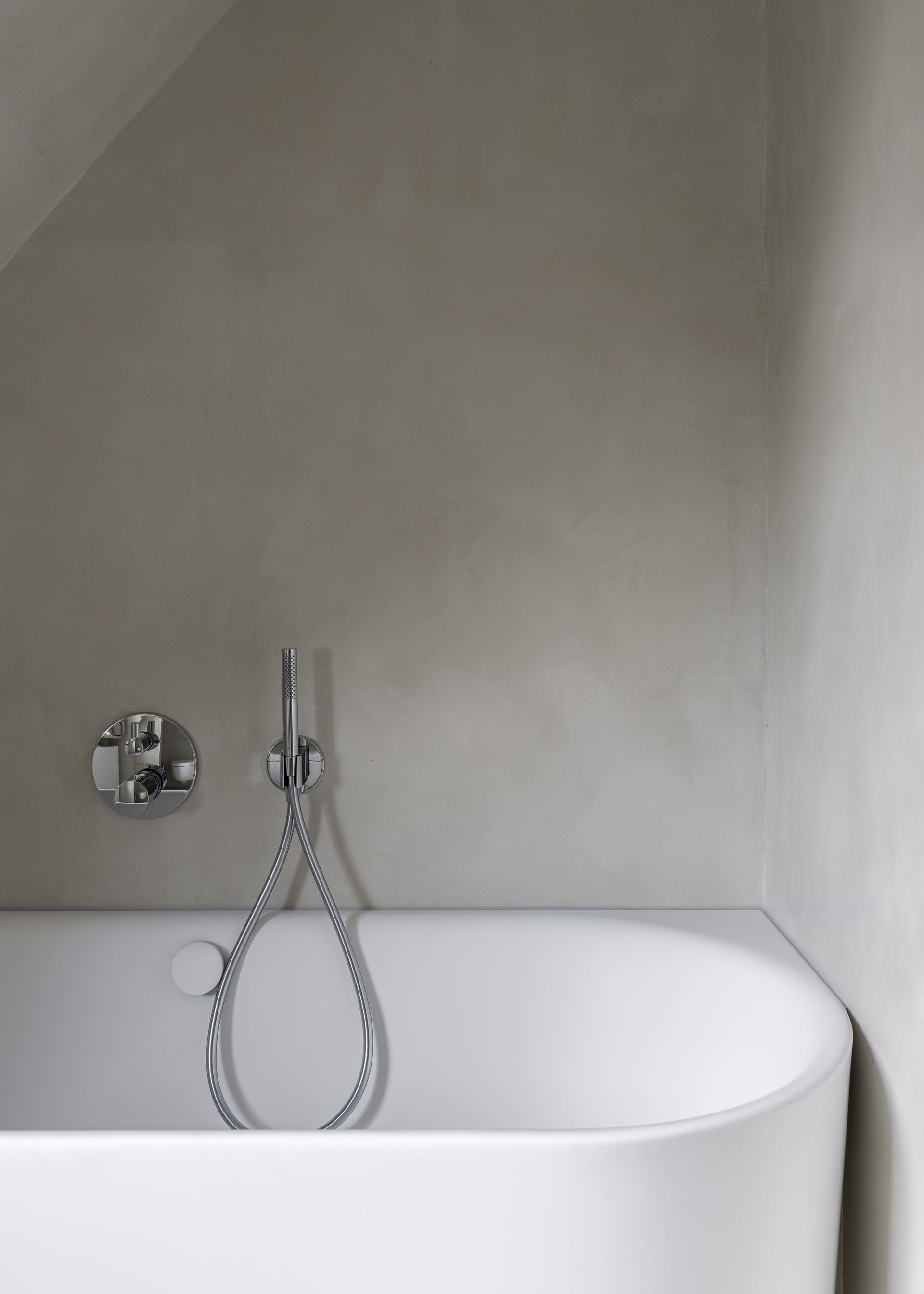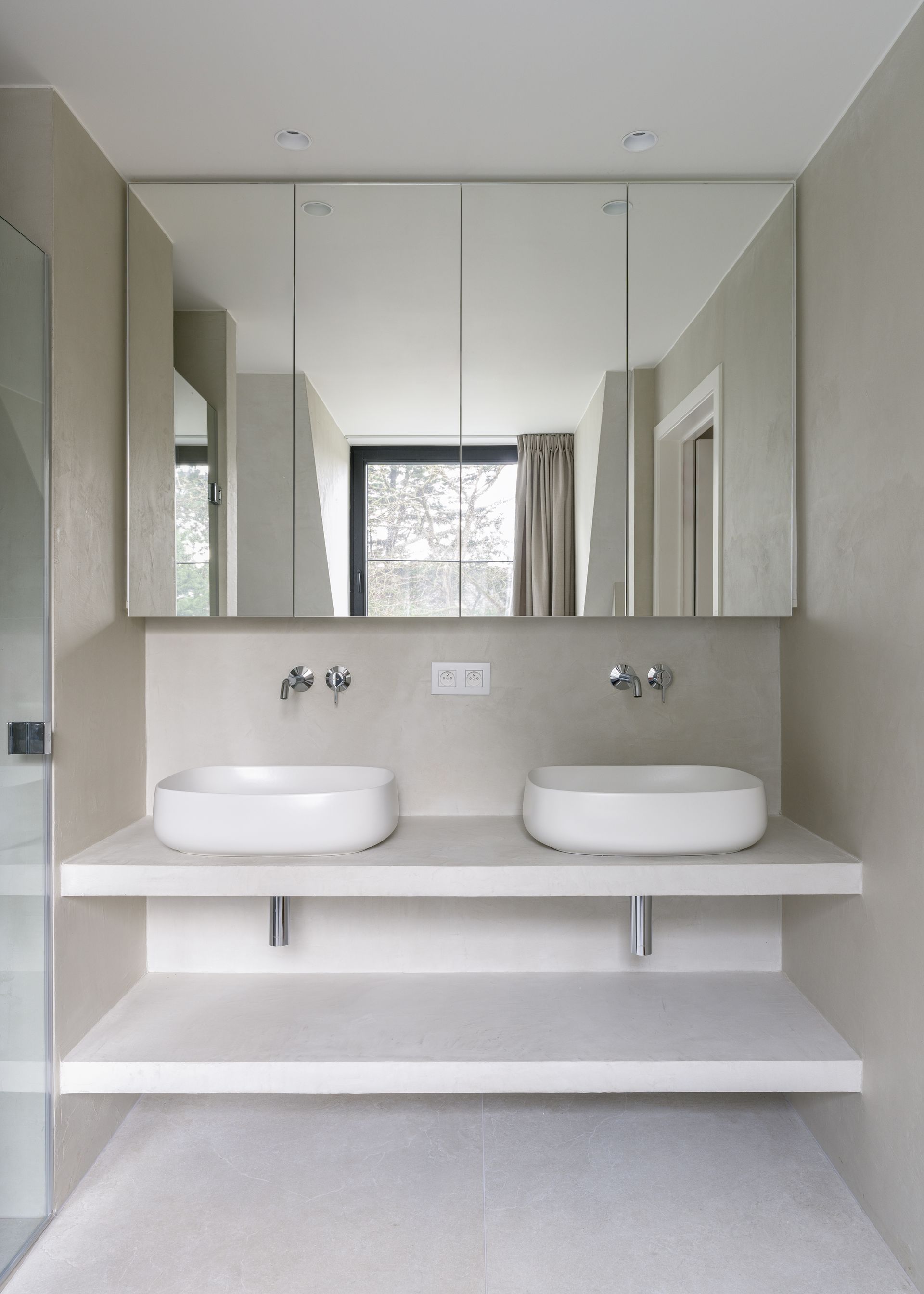 Van Hevele installeerde nieuwe badkamers, toiletten, verwarmingstoestellen, de stookinstallatie en het ventilatiesysteem. De badkamers zijn in dezelfde stijl ontworpen door een architect en een interieurarchitect. De keramieken lavabokommen en chromen kranen van Axor geven de badkamers een luxe uitstraling. De maatwerk douchedeuren van Huppe zorgen voor douchecomfort en in de masterbadkamer werd gekozen voor een half vrijstaand mat wit bad. Ook de verwarmingstoestellen hebben een luxe uitstraling en zijn afgewerkt met designknoppen en afwerkroosters van aluminium en licht gekleurd hout.